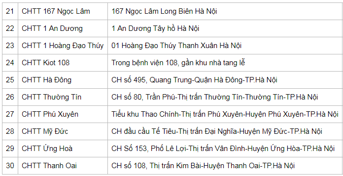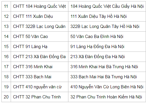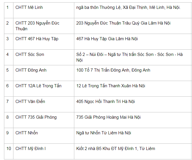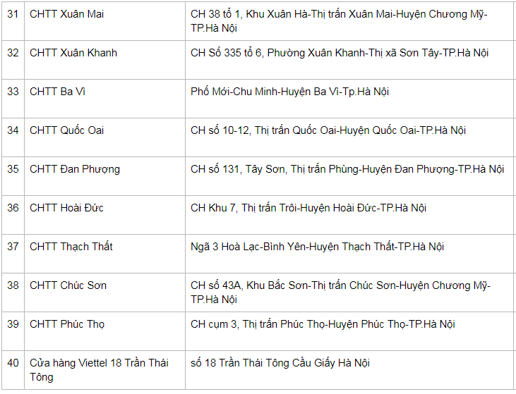 DANH SÁCH CỬA HÀNG VIETTEL TẠI HÀ NỘI