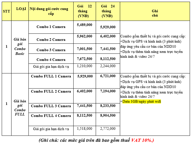 Viettel xin gửi báo giá giải pháp “Giám sát hành trình xe ô tô kèm Camera theo Nghị định 10/2020/NĐ-CP” đến Quý khách hàng như sau: